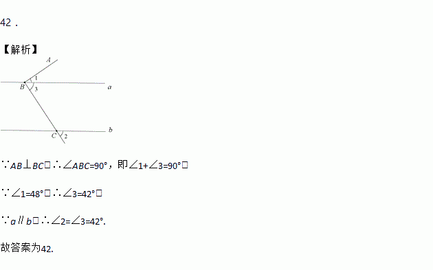 如图,直线∥, ,如果,那么_______度.