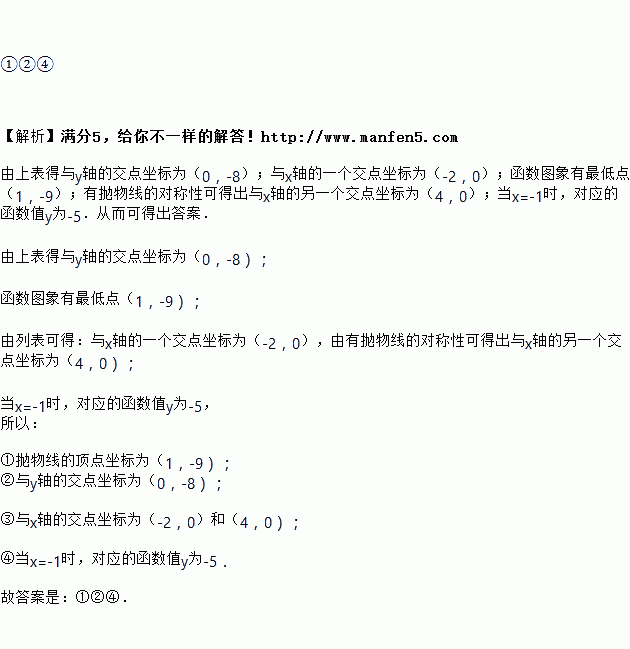 ①抛物线的顶点坐标为(1,﹣9);