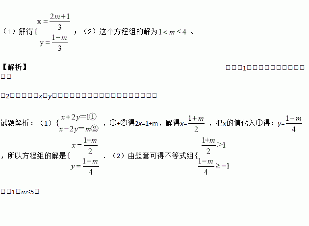(2)当m取何值时,这个方程组的解中,x大于1,y不小于-1.