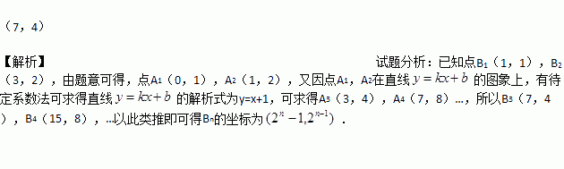 轴上,已知点B1(1,1),B2(3,2), 则Bn的坐标是______。