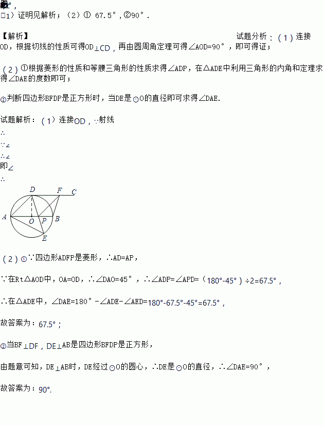 ①若DF=AP,当∠DAE=_________时,四边形ADFP是菱形;