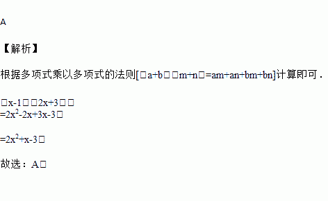 A. 2x2+x﹣3 B. 2x2﹣x﹣3 C. 2x2﹣x+3 D. x2﹣2x﹣3