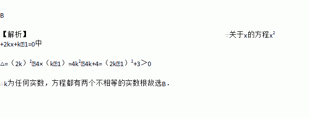 D、根据k的取值不同,方程根的情况分为没有实数根、有两个不相等的实数根和有两个相等的实数根三种