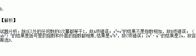 D.2a2·a-1=2a