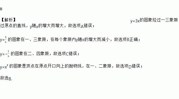姜老师给出一个函数表达式,甲、乙、丙三位同学分别正确指出了这个函数的一个性质.甲:函数图像经过第一象限;乙:函数图像经过第三象限;丙:在每一个象限内,y值随x值的增大而减小.根据他们的描述,姜老师给出的这个函数表达式可能是()