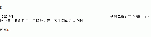 某种零件模型可以看成如图所示的几何体(空心圆柱),该几何体的俯视图是( )