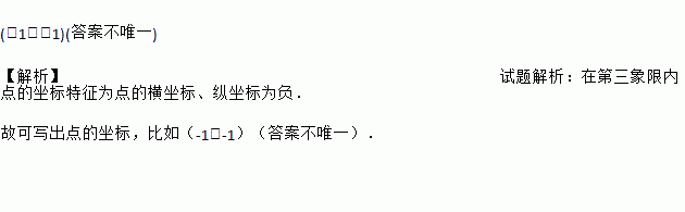 写出平面直角坐标系中一个第三象限内点的坐标:________.