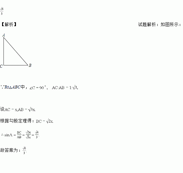 在Rt△ABC中,∠C=90°,AC∶AB=1∶,则sinA=___.