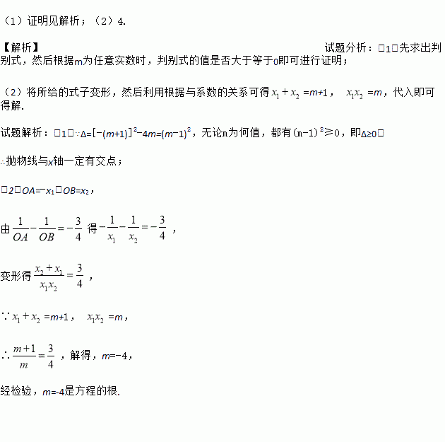 (2)若抛物线与x轴交于A(x1,0),B(x2,0)两点,x1﹤0﹤x2,且,求m的值.