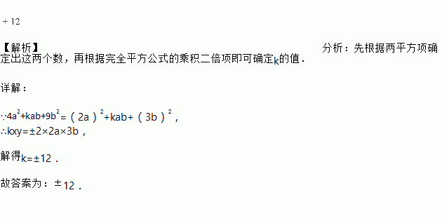 若4a2+kab+9b2是完全平方式,则k的值为________