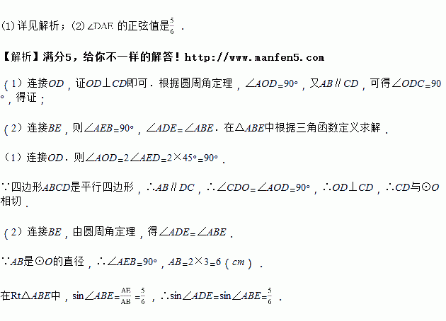 如图,四边形是平行四边形,以为直径的经过点,是上一点,且.