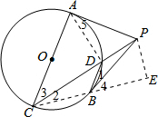 解:连接AD,CB,过点P作PE⊥CB交CB的延长线于E,如图,