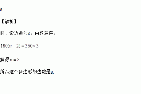 若一个正多边形的内角和是其外角和的倍,则这个多边形的边数是______.