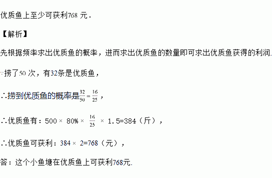 元/斤,则这个小鱼塘在优质鱼上可获利多少元?![]()