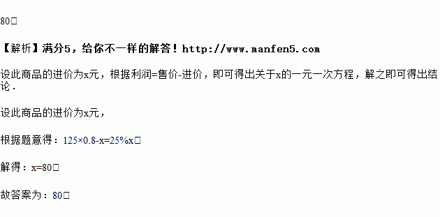 某商品标价为125元,现按标价的8折销售,仍可获利25%,则此商品的进价是_____元.