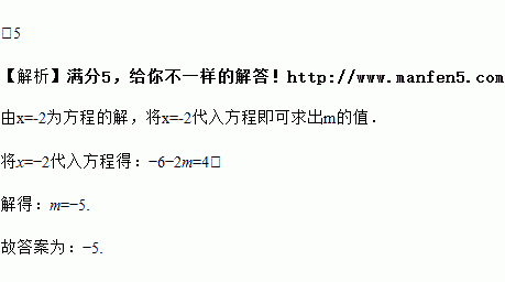 若关于x的方程3x-2m=4的解是x=-2,则m_________ .