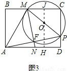 (3)随着点P的运动,若⊙O与AM相切于点M时,⊙O又与AD相切于点H.设AB为4,请你通过计算,画出这时的图形.(图2,3供参考)