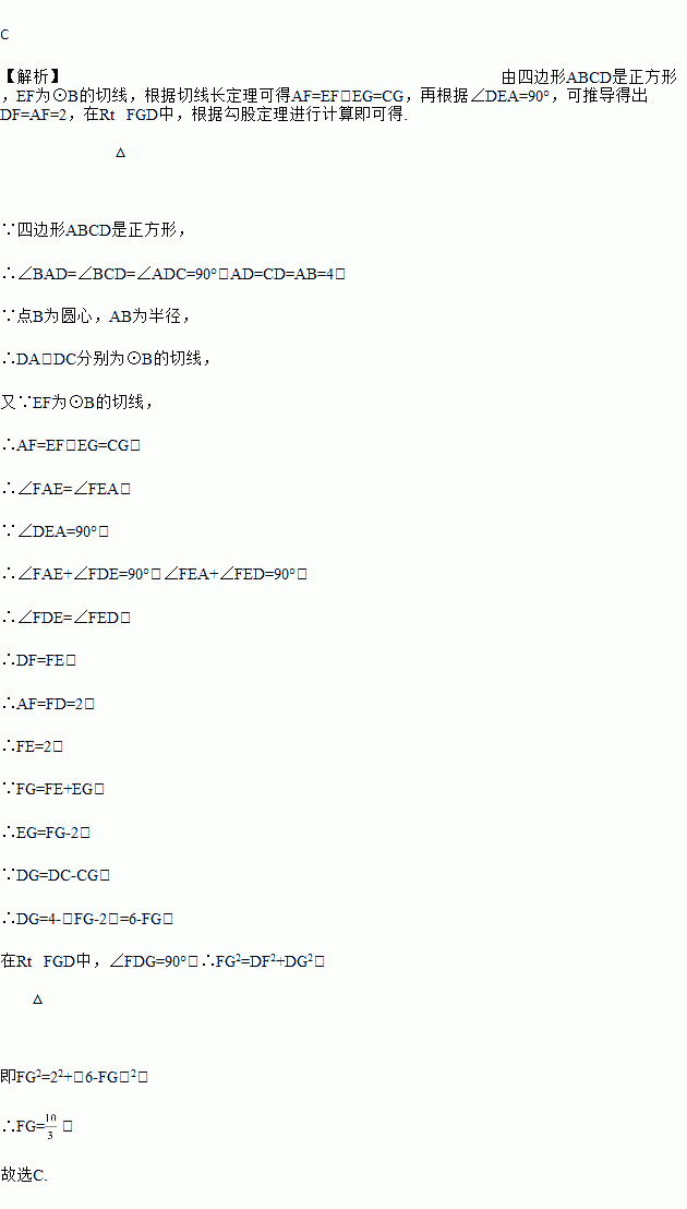 所在圆的切线分别交边AD,CD于点F,G,连接AE,DE,若∠DEA=90°,则FG的长为( )