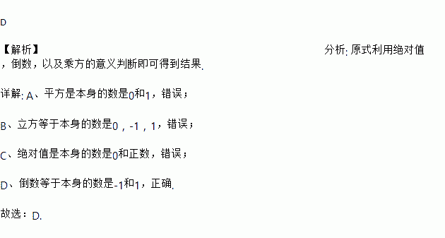 C. 绝对值是它本身的数是正数 D. 倒数是它本身的数是±1