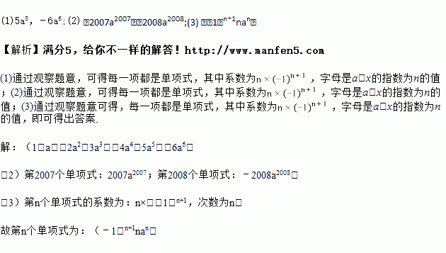 (2)试写出第2007个单项式 ;第2008个单项式 ;