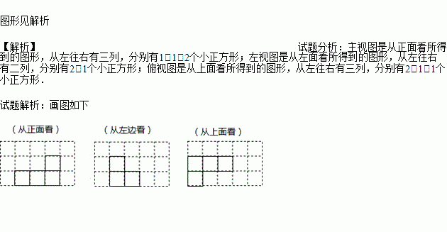 如图所示是由五个小立方体构成的立体图形,请你分别画出从它的正面、左面、上面三个方向看所得到的平面图形.