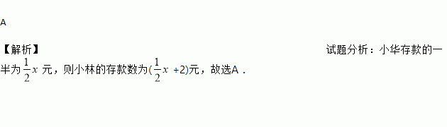 小华的存款x元,小林的存款比小华的一半还多2元,小林的存款是( )