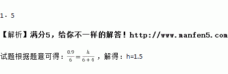 在阳光体育课上,小腾在打网球,如图所示,网高0.9m,球刚好打过网,而且落在离网6 m的位置上,则球拍击球的高度h = m.