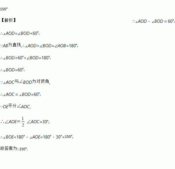 如图所示,直线AB,CD相交于点O,OE平分∠AOC,若∠AOD-∠DOB=60°,则∠EOB=__________.