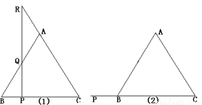 如图,(1)P是等腰三角形A BC底边BC上的一人动点,过点P作BC的垂线,交AB于点Q,交CA的延长线于点R。请观察AR与AQ,它们有何关系?并证明你的猜想。