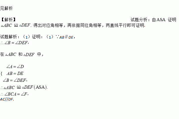 已知AB//DE,BE=CF,AB=DE,∠A=∠D.