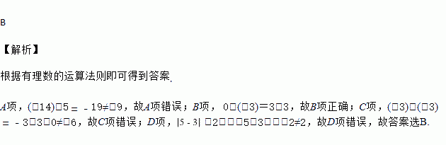 A. (-14)-5=-9 B. 0-(-3)=3 C. (-3)-(-3)=-6 D.