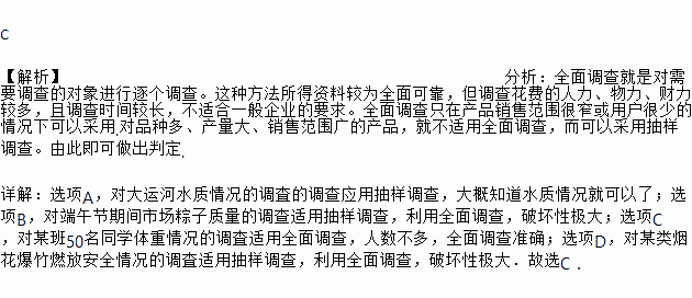 A. 对大运河水质情况的调査 B. 对端午节期间市场上粽子质量情况的调査
