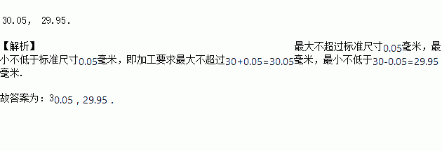 一种零件的内径尺寸在图纸上是30±0.05(单位:毫米),表示这种零件的标准尺寸是30毫米,加工要求最大不超过________毫米,最小不低于________毫米.