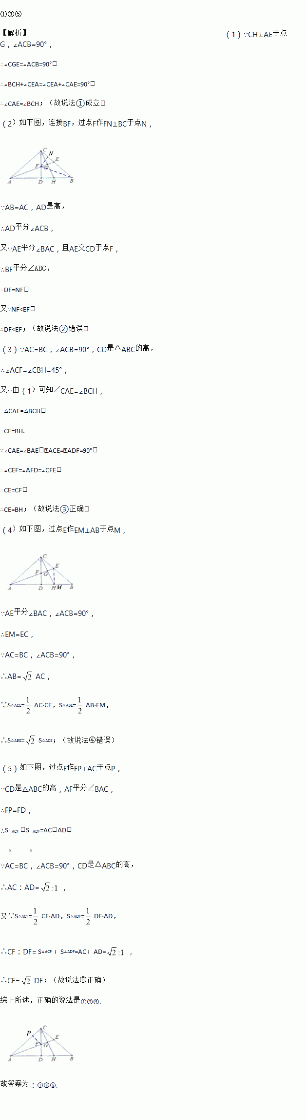 如图,在中, , , 的高与角平分线相交点,过点作于,交于.下列说法:①;②;③;④;⑤.正确的是_____.