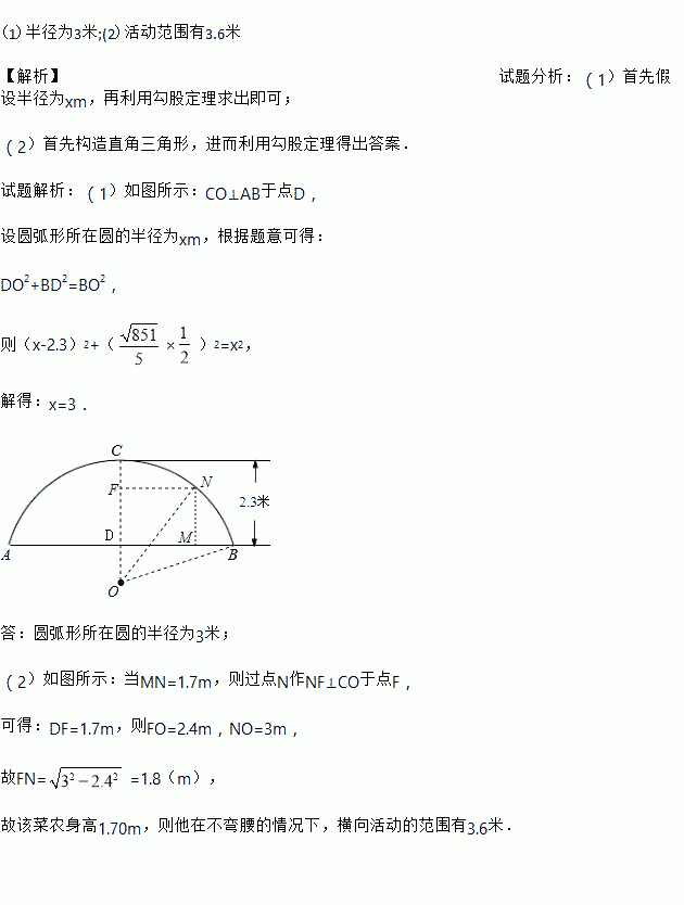 (2)若该菜农的身高为1.70米,则他在不弯腰的情况下,横向活动的范围有几米?