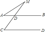 分析:先根据三角形的外角性质得出∠MDB=∠A+∠M,则∠MDB=∠C,再根据同位角相等,两直线平行即可判定AB∥CD.
