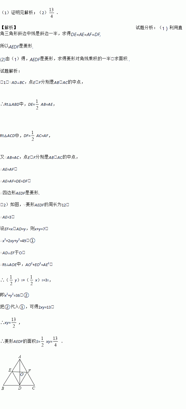 (2)如果四边形AEDF的周长为12,两条对角线的和等于7,求四边形AEDF的面积S.