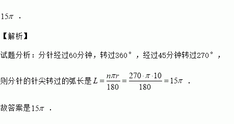 挂钟分针的长10cm,经过45分钟,它的针尖转过的弧长是 cm.