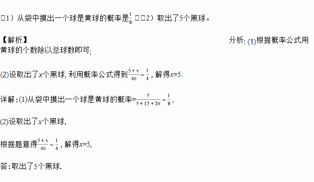 (2)现从袋中取出若干个黑球,并放入相同数量的黄球,搅拌均匀后,使从袋中摸出一个球是黄球的概率是