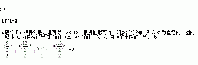 如图,Rt△ABC中,AC=5,BC=12,分别以它的三边为直径向上作三个半圆,则阴影部分面积为_____