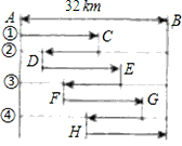 七年级93个同学在4位老师的带领下准备到离学校32千米处的某地进行社会调查,可是只有一辆能坐25人的汽车.为了让大家尽快地到达目的地,决定采用步行与乘车相结合的办法.如果你是这次行动的总指挥,你将怎样安排他们乘车,才能使全体师生花最短的时间到达目的地?最短的时间是多少?(师生步行的速度是5千米/时,汽车的速度是55千米/时,上、下车时间不计.)
