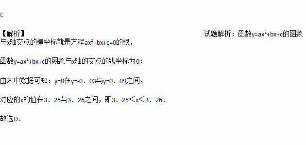 根据下列表格的对应值,判断方程ax2+bx+c=0一个解的范围是( )