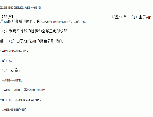 (1)试判断B′E与DC的位置关系;
