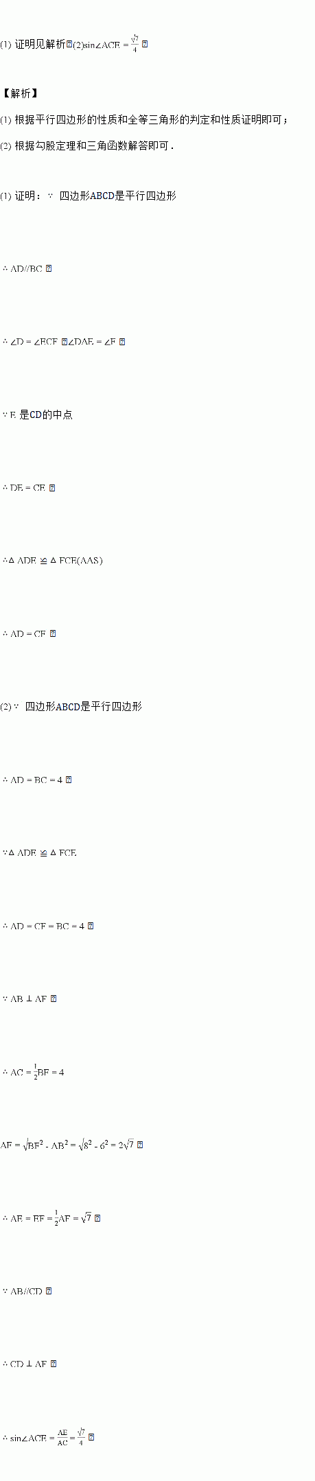 如图,已知平行四边形ABCD中,E是边CD的中点,连接AE并延长交BC的延长线于点F,连接AC.