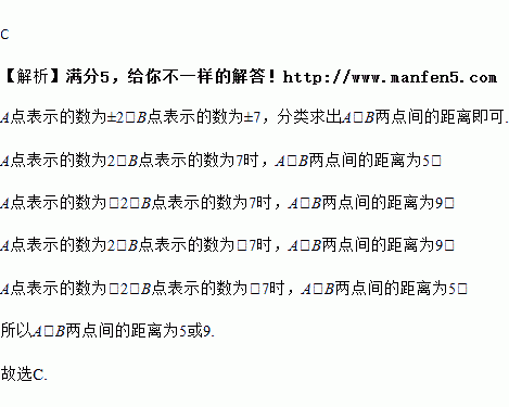 已知数轴上两点A、B到原点的距离是2和7,则A,B两点间的距离是 ( )