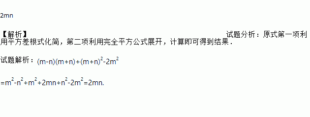 计算:(m-n)(m+n)+(m+n)2-2m2.