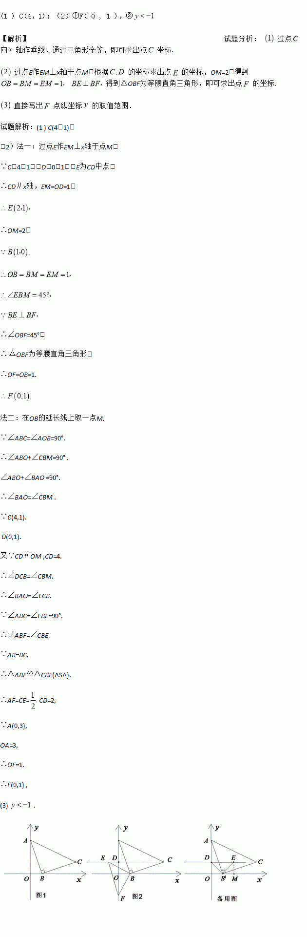 (2)如图2,点D的坐标为(0,1),点E在射线CD上,过点B 作BF⊥BE交y轴于点F.