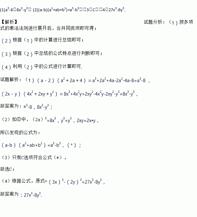 (2)上面的整式乘法计算结果很简单,由此又发现一个新的乘法公式: _________________________(请用含a、b的字母表示)