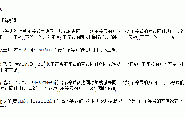 b C. 4+3a>4+3b D. ﹣2a>﹣2b