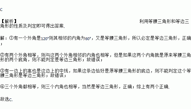 ¢ÙÓÐÒ»¸öÍâ½ÇÊÇ120¡ãµÄµÈÑüÈý½ÇÐÎÊǵȱßÈý½ÇÐΣ®